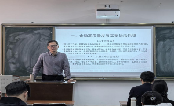 2026年1月15日下午,中国人民大学法学院教授、博士生导师姚海放应邀来我院进行学术访问,并在学校雁塔校区3号教学楼303教室为我院师生带来精彩的《金融强国战略中的金融法立法》学术讲座。本次讲座由经济法学院(知识产权学院)院长党雷主持,副院长肖新喜教授、副院长常鑫副教授、杨为乔副教授担任与谈人。副院长薛亮教授、李军波、徐楠芝、宋景、黄文瑄、刘旭杰老师及学院博士研究生、硕士研究生、本科生等50余人积极参加讲座。